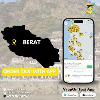 VrapOn Taxi App ofron Shërbim Taksi në Berat dhe në qytetet e tjera si Tirana, Durresi, Vlora, Saranda, Gjirokastra, Shkoder, Fier, and Elbasan. Për të shmangur pagesat e tepërta përdorni këtë app. Shkarkoni tani bashkëudhëtuesin tuaj të përditshëm në Shqipëri: VrapOn Taxi App